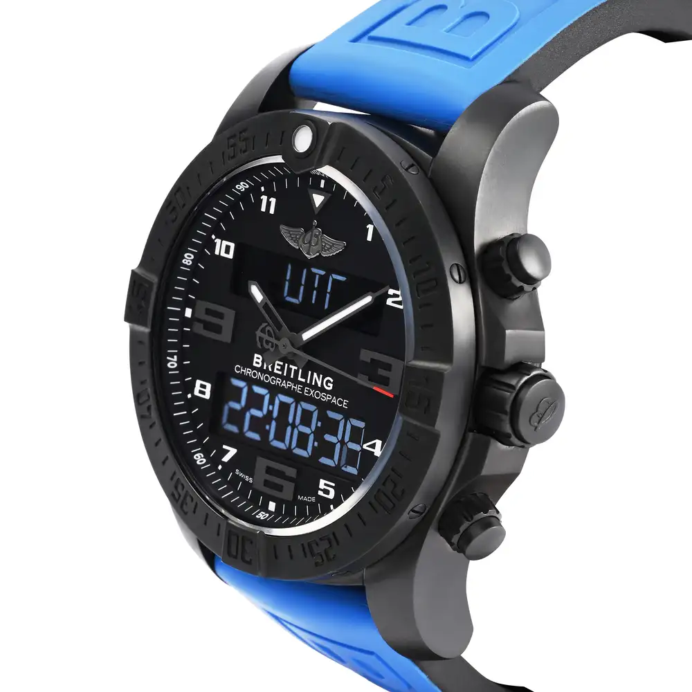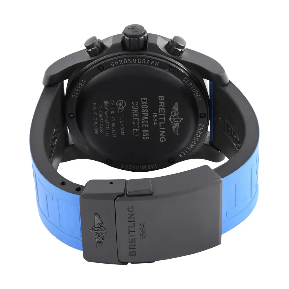 The Breitling Exospace B55 VB5510H21B1S1 redefines the modern pilot’s watch with advanced connectivity and precision engineering. Its 46mm titanium case houses a black analog-digital dial powered by the Breitling Caliber B55 SuperQuartz™, offering Bluetooth connectivity for seamless smartphone integration. Designed for aviation professionals, it features chronograph functions, dual time zones, and a rechargeable battery system — blending technology, functionality, and bold design in perfect harmony.