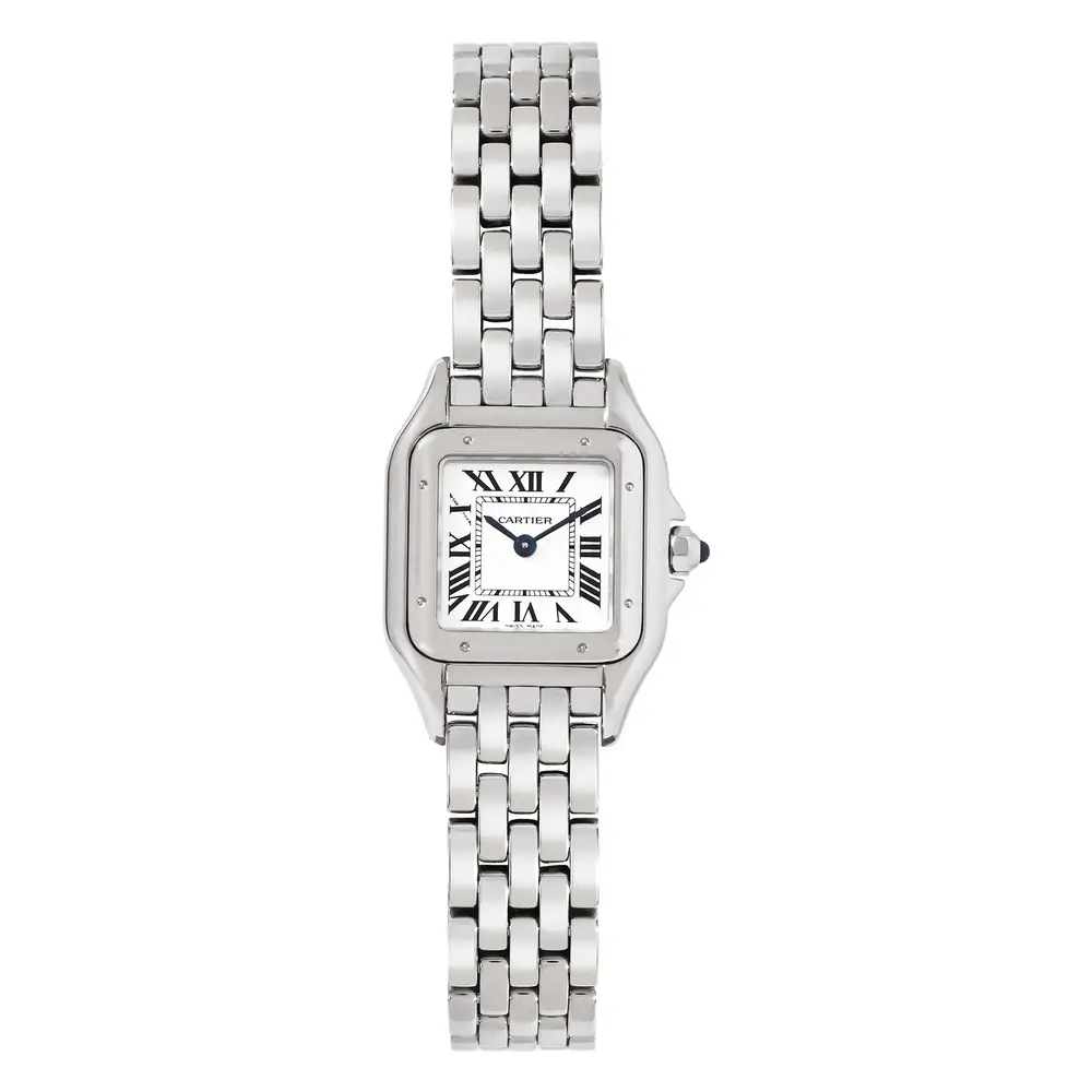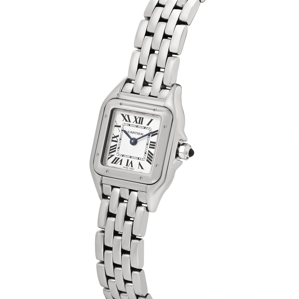 The Cartier Panthère WSPN0013 is a refined and sophisticated women’s timepiece featuring a petite 23mm steel case, signature Roman numeral dial, and a graceful steel link bracelet. A timeless expression of feminine elegance and luxury.