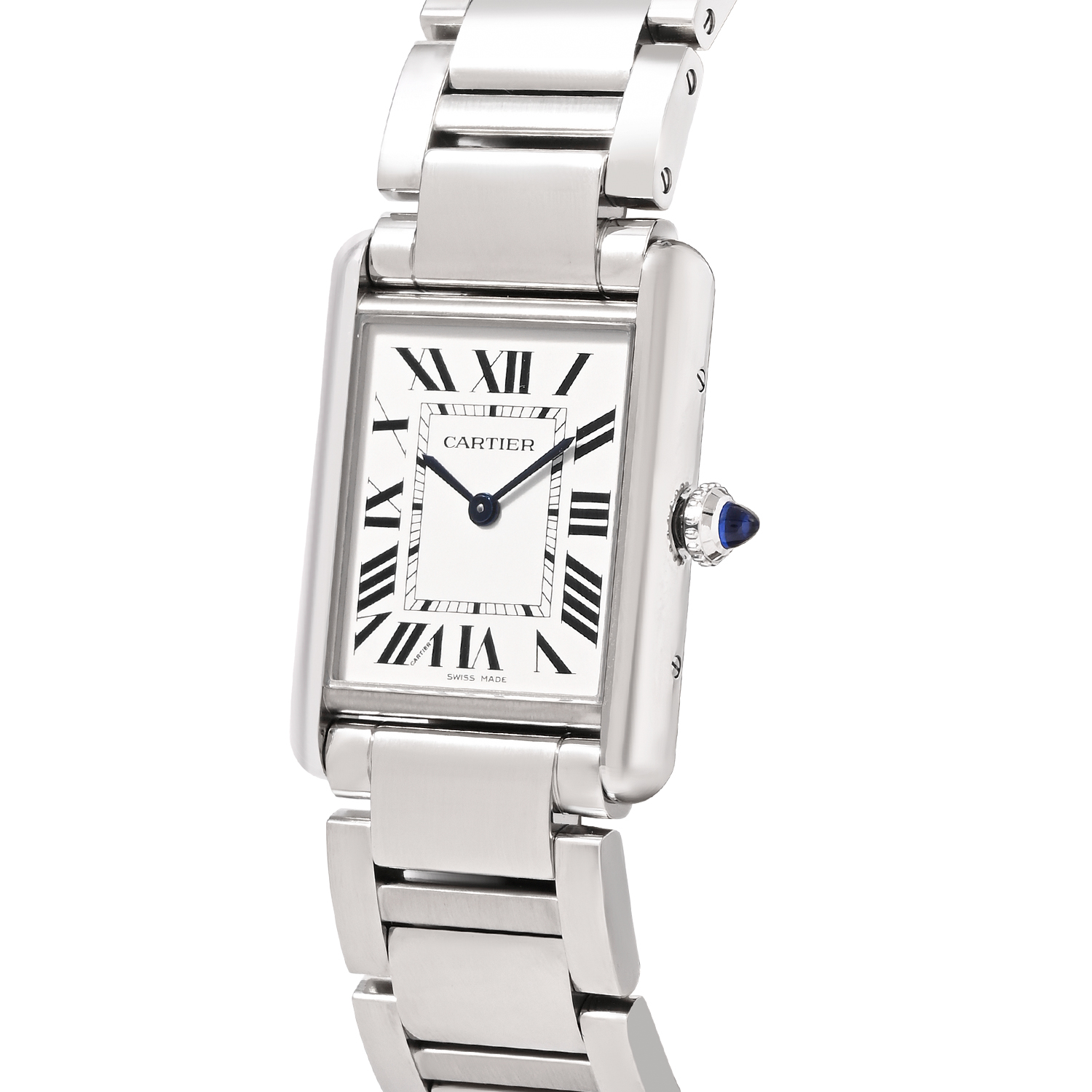 The Cartier Tank Must WSTA0106 is a refined reinterpretation of the iconic Tank design. Featuring a sleek stainless steel case, silver opaline dial with bold Roman numerals, and a signature blue cabochon crown, this quartz-driven timepiece is a timeless expression of elegance for both men and women.