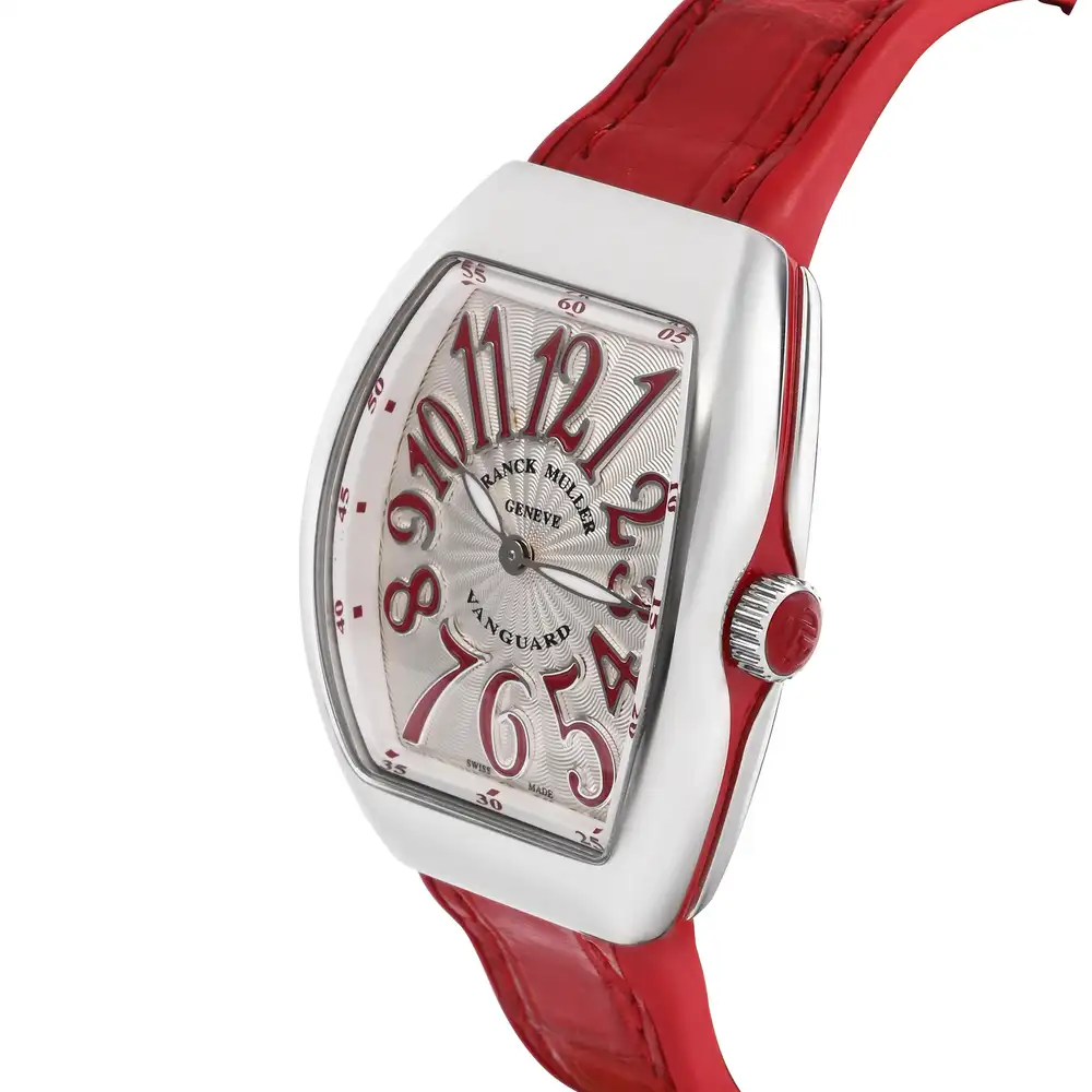 The Franck Muller Vanguard V 35 QZ AC RG captures contemporary elegance with bold design and Swiss precision. Its distinctive 35mm tonneau-shaped stainless steel case is accented with 18ct rose gold details, framing a refined dial with applied numerals and elegant curves. Powered by a reliable quartz movement, it combines modern sophistication with everyday practicality — a true statement of refined taste.
