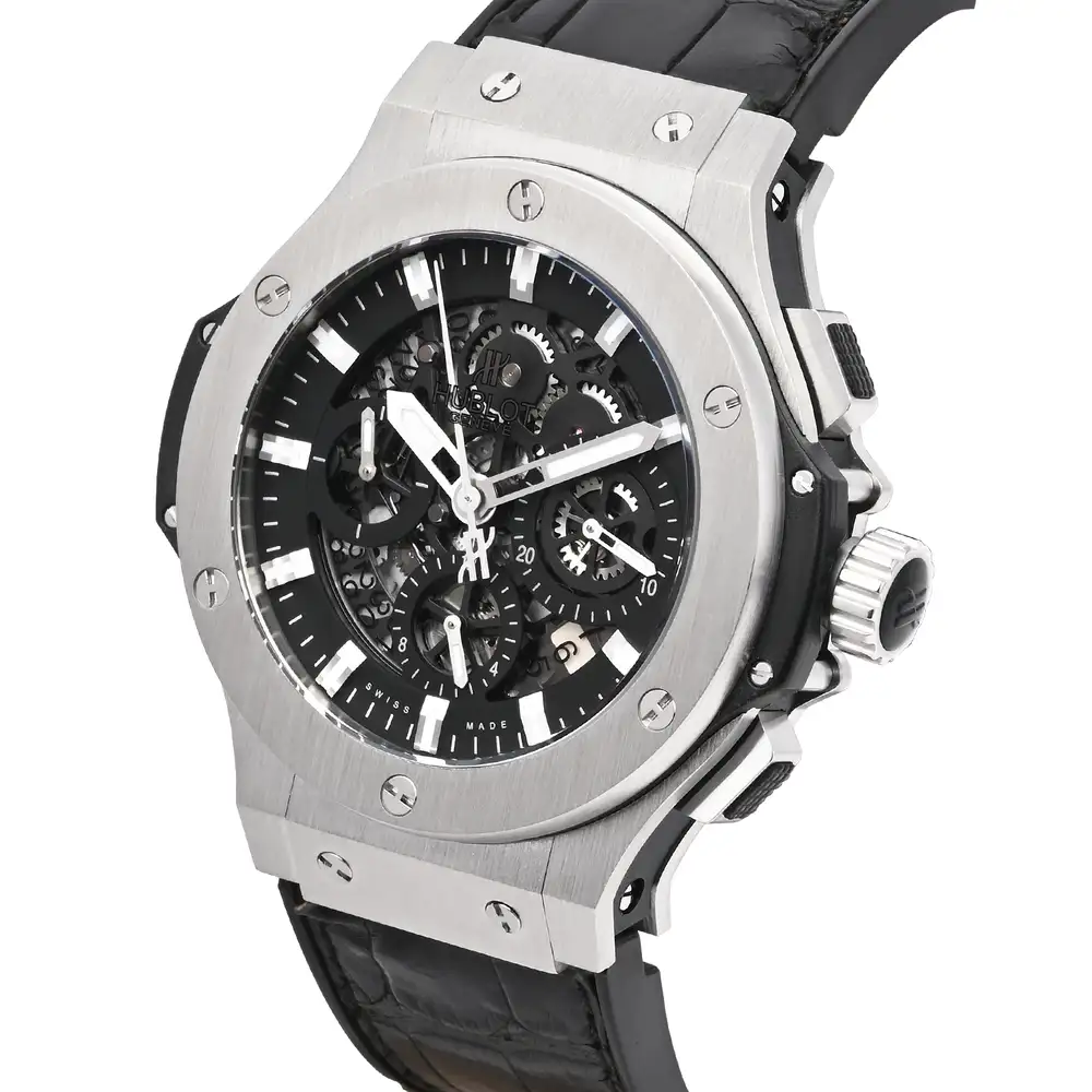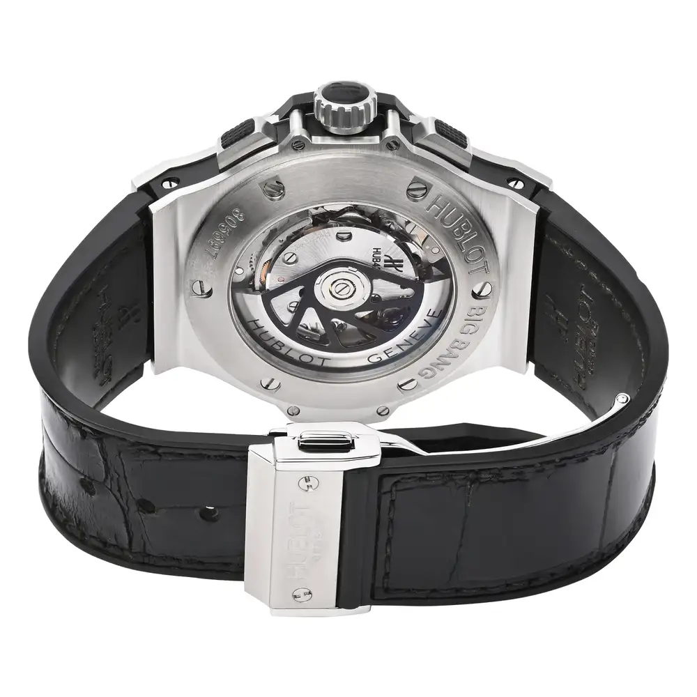 Hublot Big Bang 311.SX.1170.GR – A bold fusion of cutting-edge design and precision engineering. This 44mm stainless steel chronograph features a striking black dial, sapphire crystal, and an automatic movement with a 42-hour power reserve. Complemented by a sleek black alligator strap with a rubber lining, it’s the perfect statement piece for those who appreciate innovation and style.