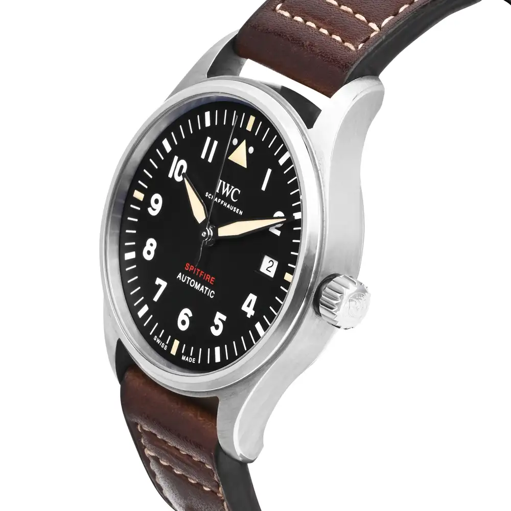 The IWC Pilot’s Watch Automatic Spitfire IW326803 is a tribute to aviation heritage with a bold, utilitarian design. Its 39mm stainless steel case houses a black dial with luminous Arabic numerals for optimal legibility. Powered by the in-house Caliber 32110 with a 72-hour power reserve, this timepiece is as reliable as it is stylish. Finished with a rugged brow leather strap, it embodies the spirit of adventure and precision engineering.