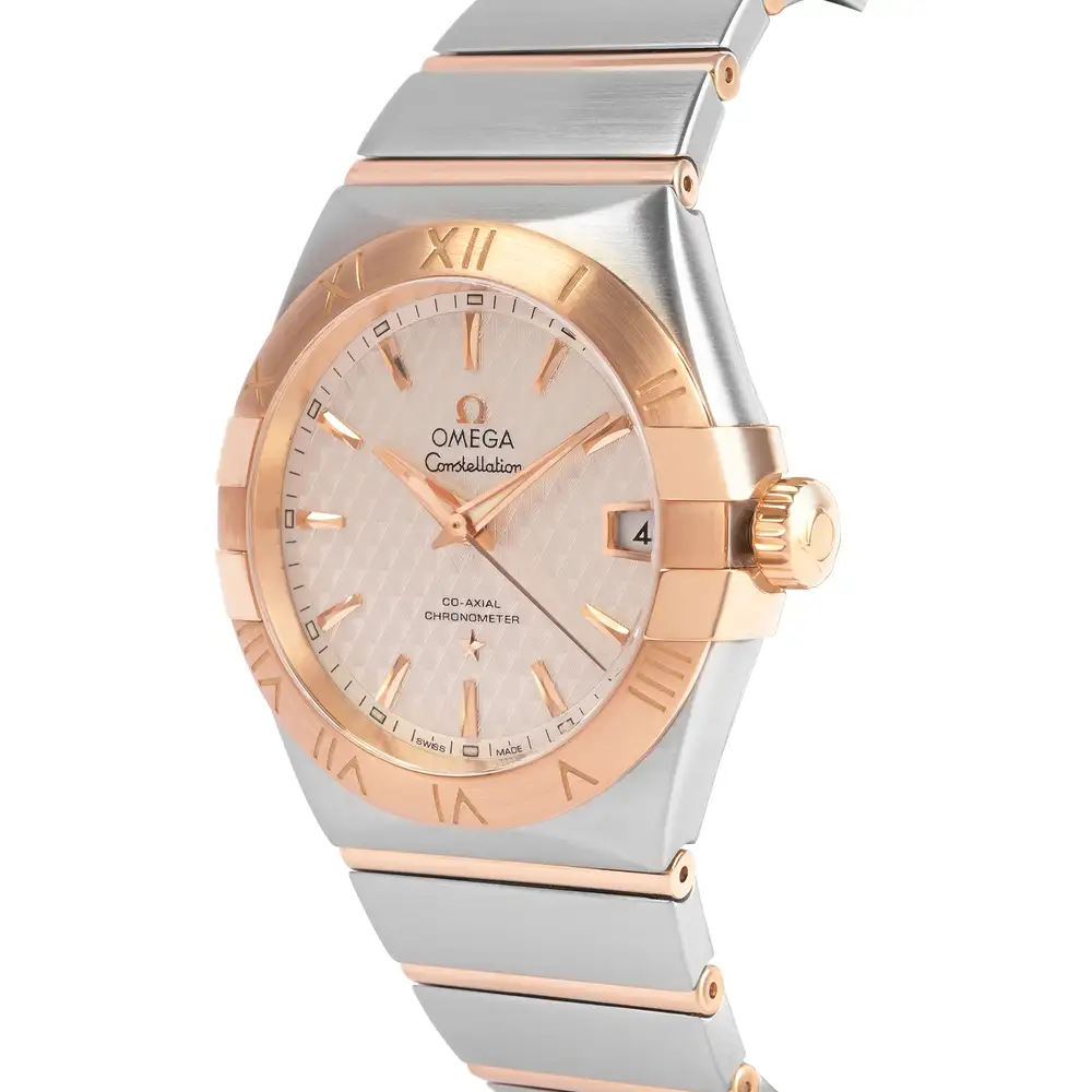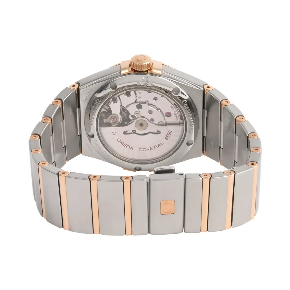 The Omega Constellation 123.20.38.21.02.008 blends elegance with iconic design. Its 38mm stainless steel case, accented with 18ct Sedna™ gold, frames a striking motif-patterned dial and diamond hour markers. Powered by the Co-Axial Master Chronometer Caliber 8800, it delivers exceptional precision, a 55-hour power reserve, and anti-magnetic performance up to 15,000 gauss. A luxurious and contemporary expression of Omega craftsmanship.