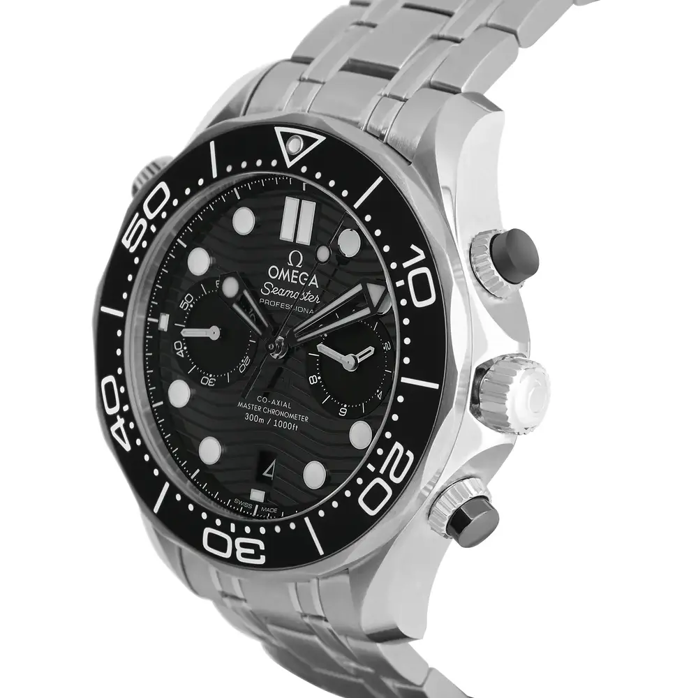 The Omega Seamaster Diver 300M is a luxurious dive watch that effortlessly blends style and functionality, featuring a 44mm stainless steel case with a striking black ceramic bezel and wave-patterned black dial. Powered by Omega's Co-Axial Master Chronometer movement, it offers exceptional precision and 300-meter water resistance. With its sleek design and robust performance, this timepiece is ideal for both adventurous pursuits and everyday wear, embodying the perfect balance of luxury and durability.