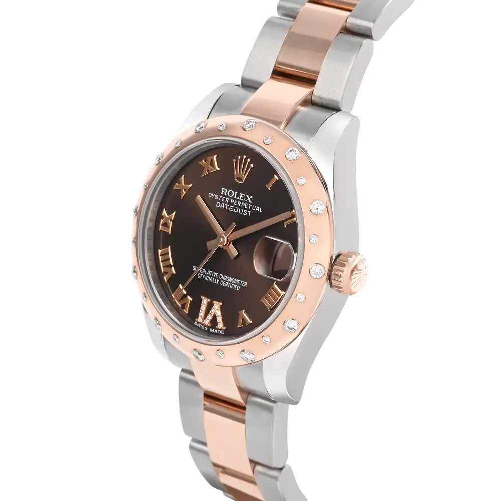 The Rolex Datejust 178341 in Steel and Everose Gold is a symbol of refined luxury. Its 31mm Oyster case features a diamond-set bezel framing a rich chocolate dial adorned with diamond hour markers. Powered by the Caliber 2236, it delivers precision, 55-hour power reserve, and timeless elegance. A masterpiece that perfectly balances sophistication and brilliance.