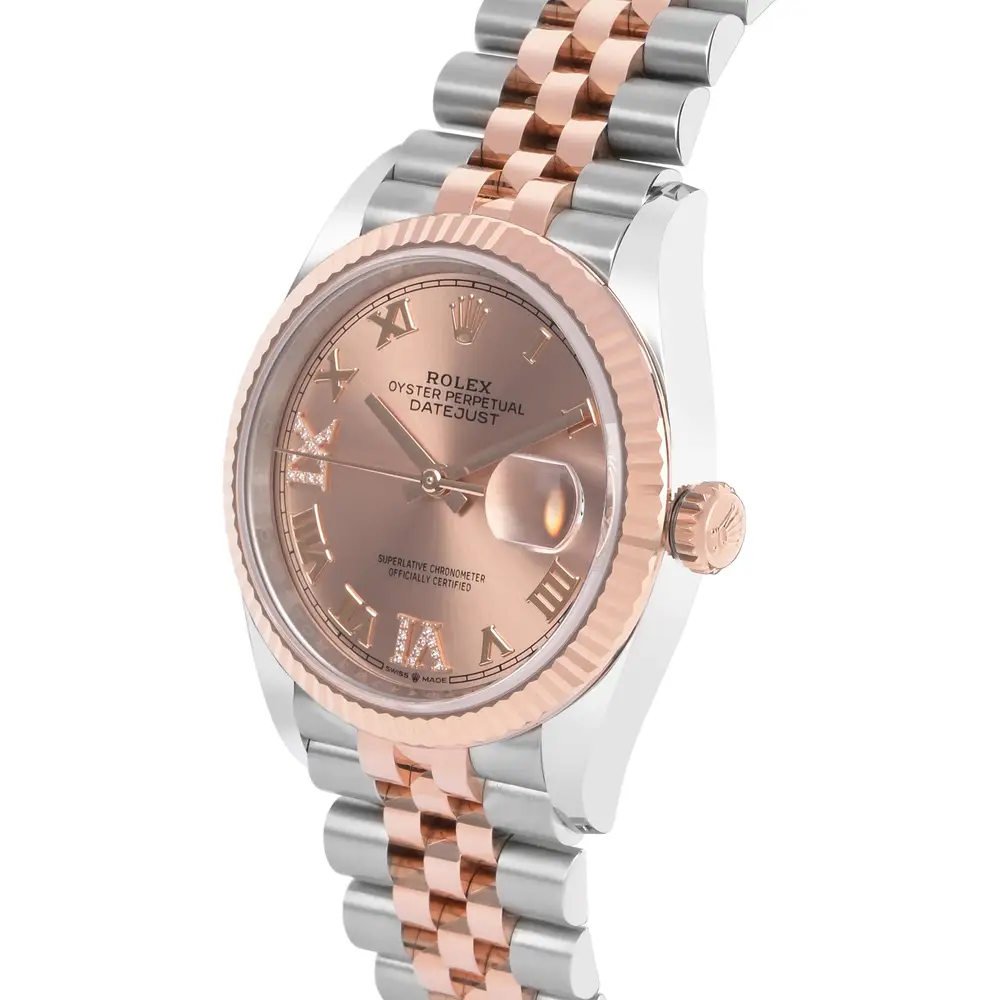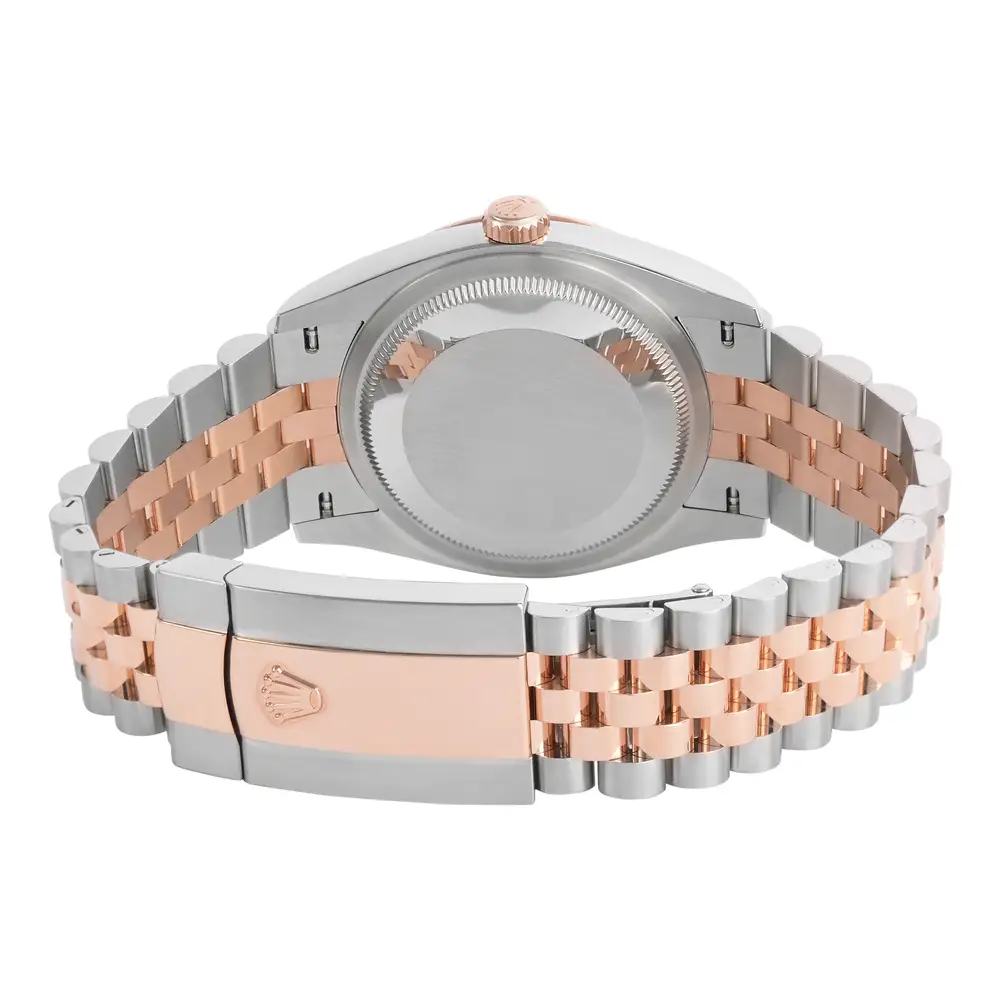 The Rolex Datejust 126231 in Steel and Everose Gold radiates refined sophistication. Its 36mm Oyster case pairs durable Oystersteel with luxurious 18ct Everose gold, framing a captivating rose-colored dial set with diamond hour markers. Powered by the Caliber 3235, it offers outstanding precision, 70-hour power reserve, and effortless elegance. A timeless expression of Rolex craftsmanship and grace.
