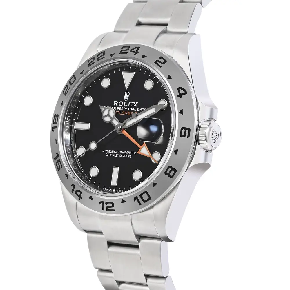 The Rolex Explorer II 226570 showcases a striking Black dial with luminous markers and a bold 42mm stainless steel case, embodying the spirit of adventure and exploration. Designed for durability and functionality, it features a reliable automatic movement and a distinctive 24-hour hand, making it an ideal companion for those who seek both style and performance in the great outdoors.