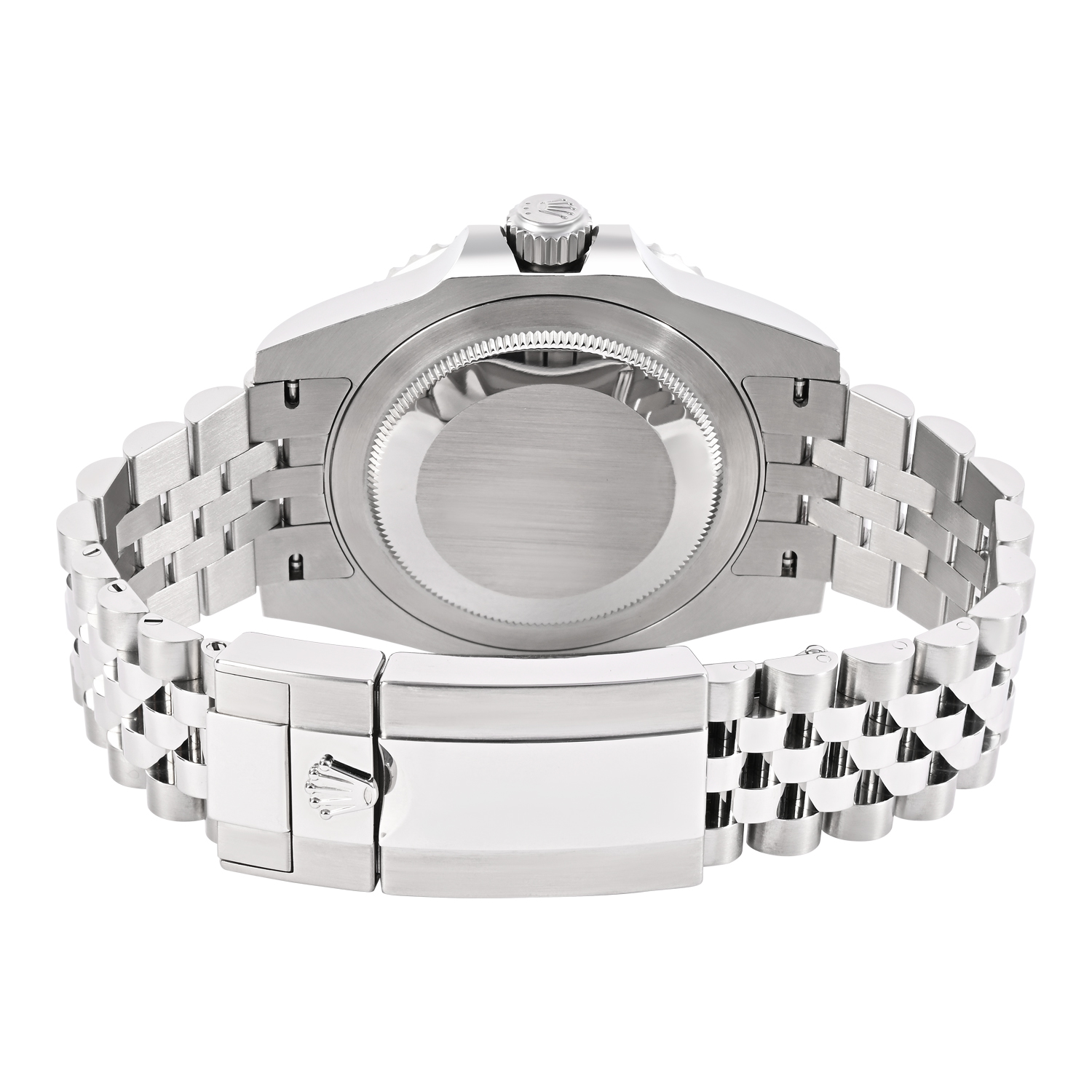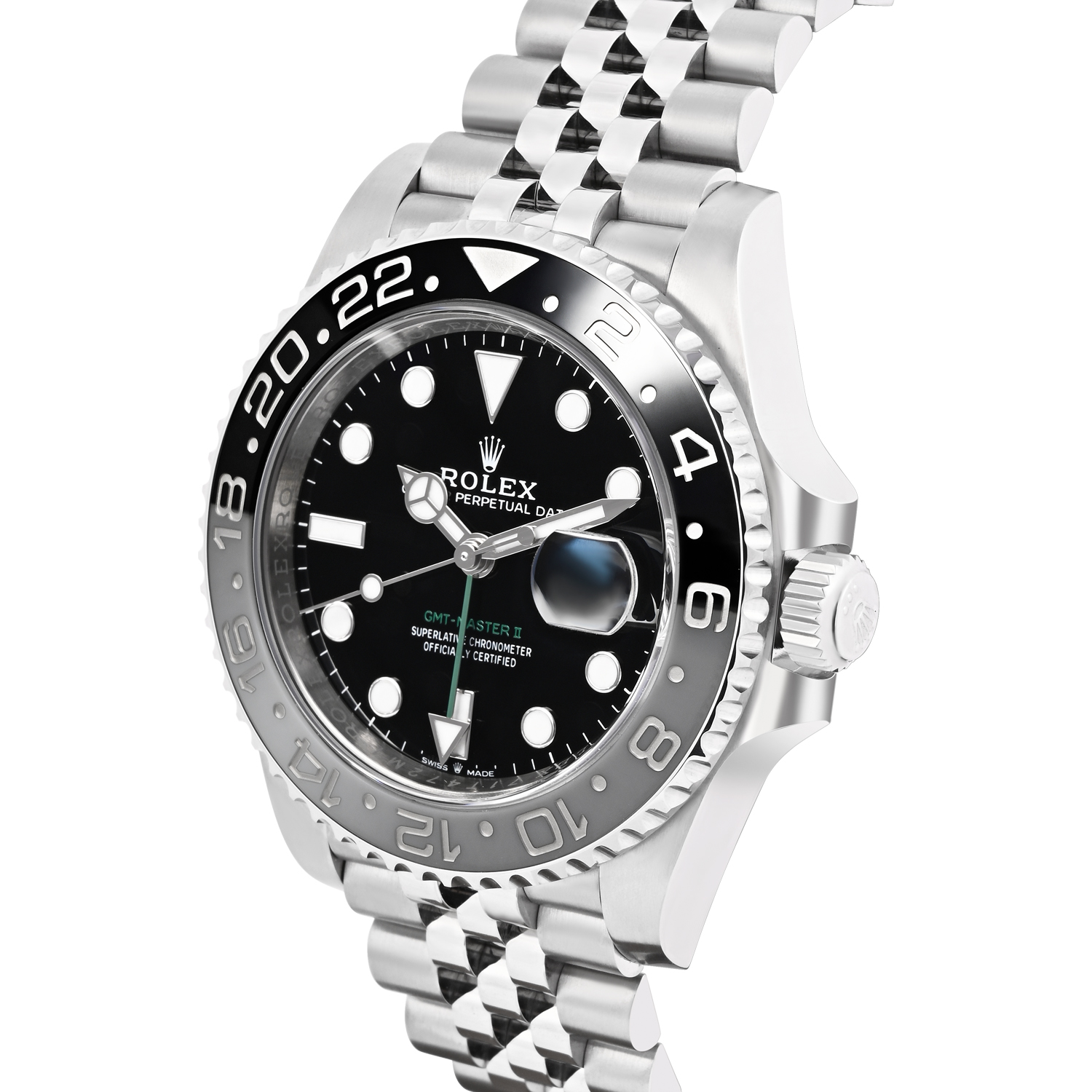 The Rolex GMT-Master II 126710GRNR brings a modern twist to the classic travel watch by incorporating a striking black and grey “Cerachrom” bezel — a subtle homage to day/night time zones — paired with a crisp black dial and the distinctive Jubilee bracelet. Built for globetrotters, it offers dual-time functionality and signature Rolex robustness in a 40 mm Oystersteel case. Whether navigating new cities or daily schedules, this GMT-Master II blends heritage with contemporary versatility.