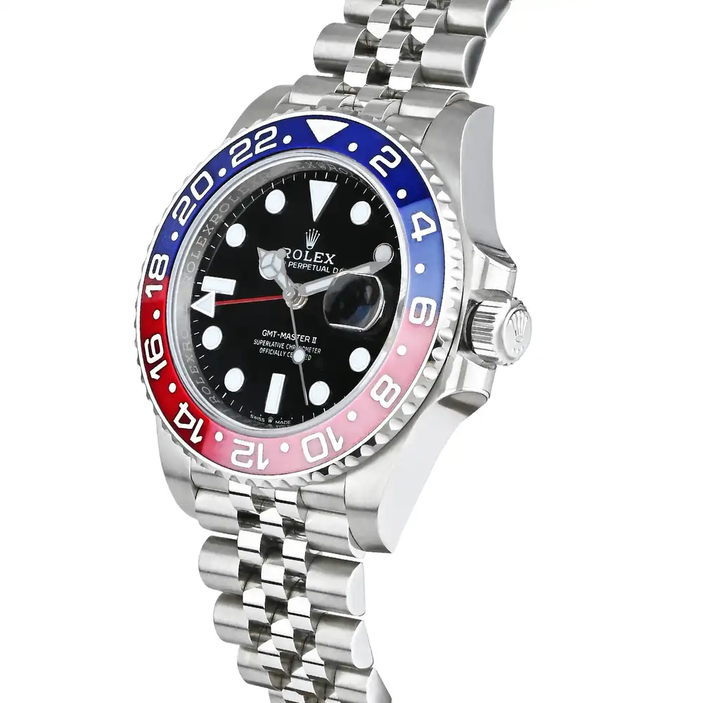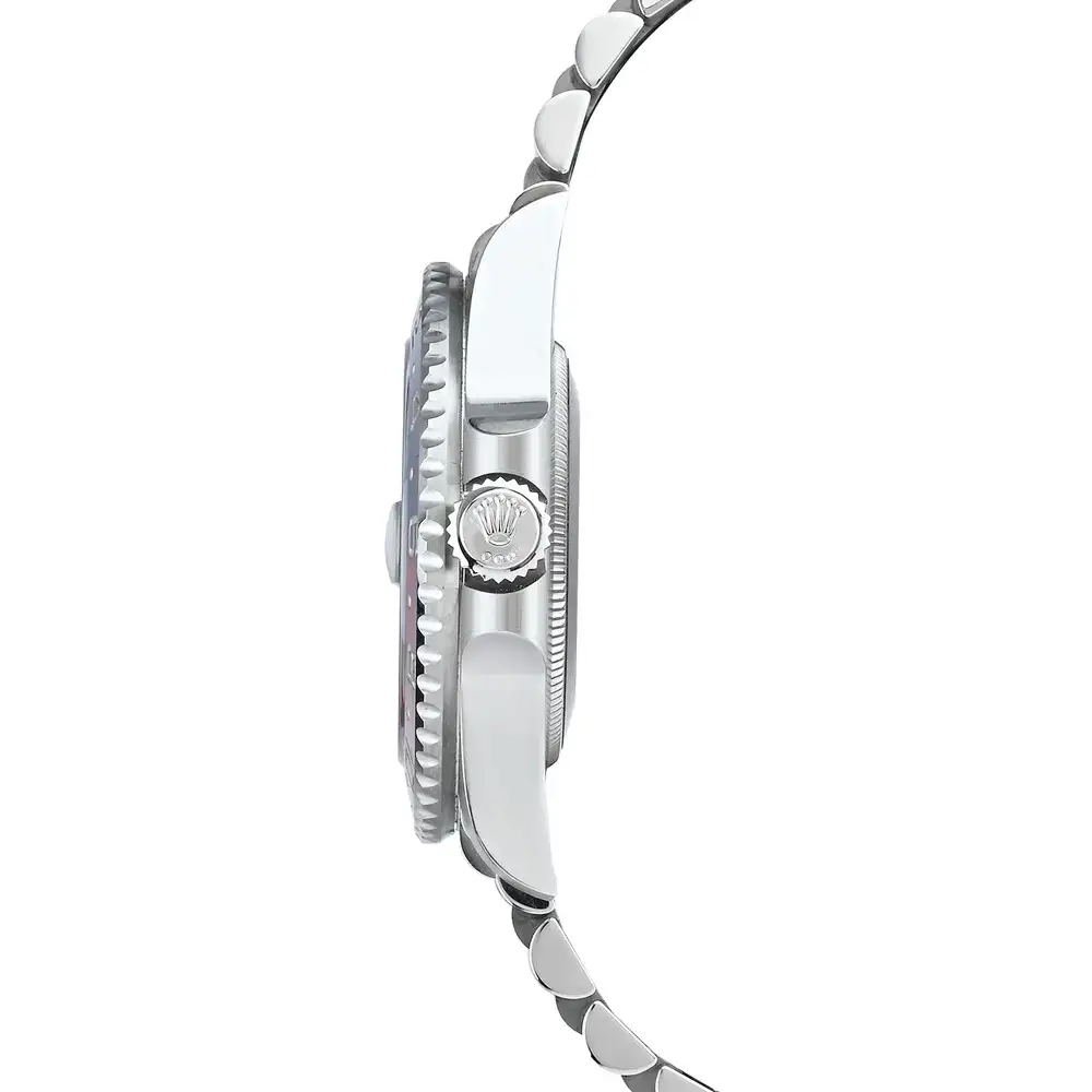 The Rolex GMT-Master II 126710BLRO in Oystersteel is a timeless icon of international travel, distinguished by its classic red and blue “Pepsi” Cerachrom bezel and sleek black dial. Its 40mm Oystersteel case is paired with a refined Jubilee bracelet, offering exceptional comfort and everyday elegance. Powered by the Rolex Caliber 3285, this GMT-Master II delivers precise dual time-zone functionality, combining legendary durability with enduring Rolex sport sophistication.