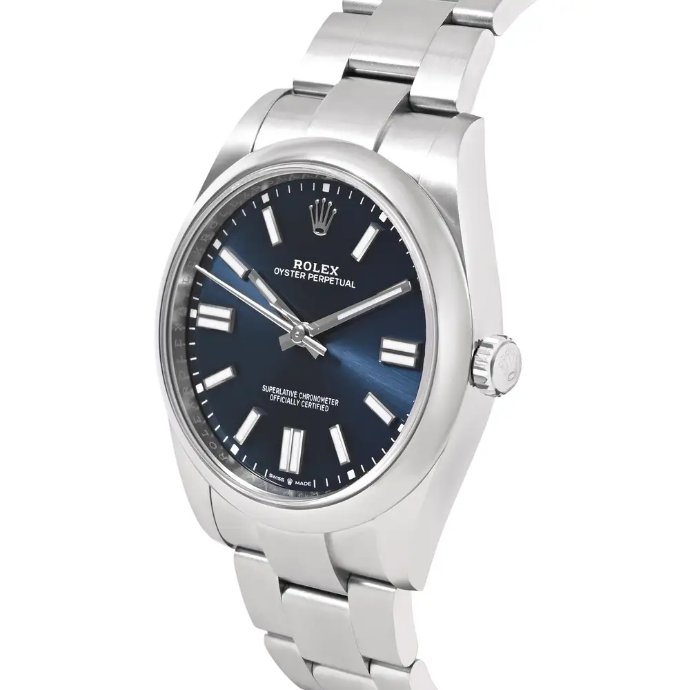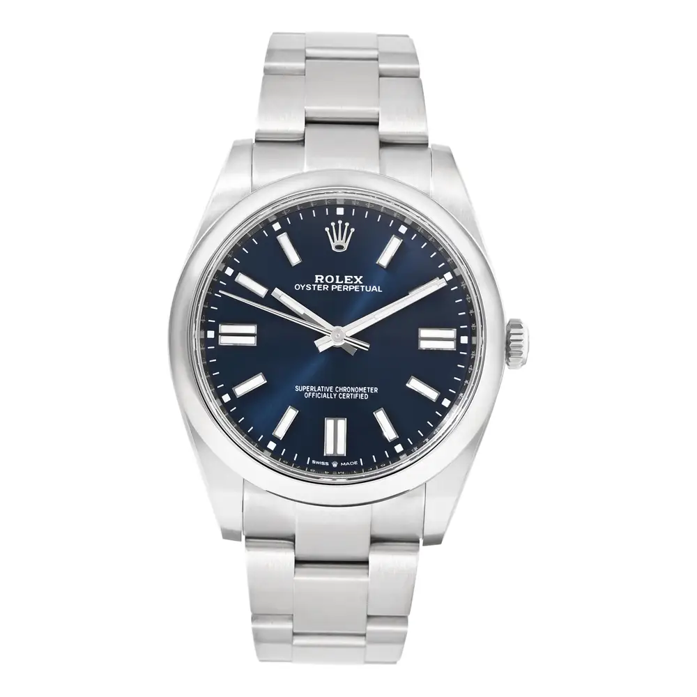 A classic and versatile Oyster Perpetual featuring a striking blue sunray dial. Powered by the latest Calibre 3230 for improved precision and power reserve, this 41mm model delivers timeless Rolex design built for everyday luxury.