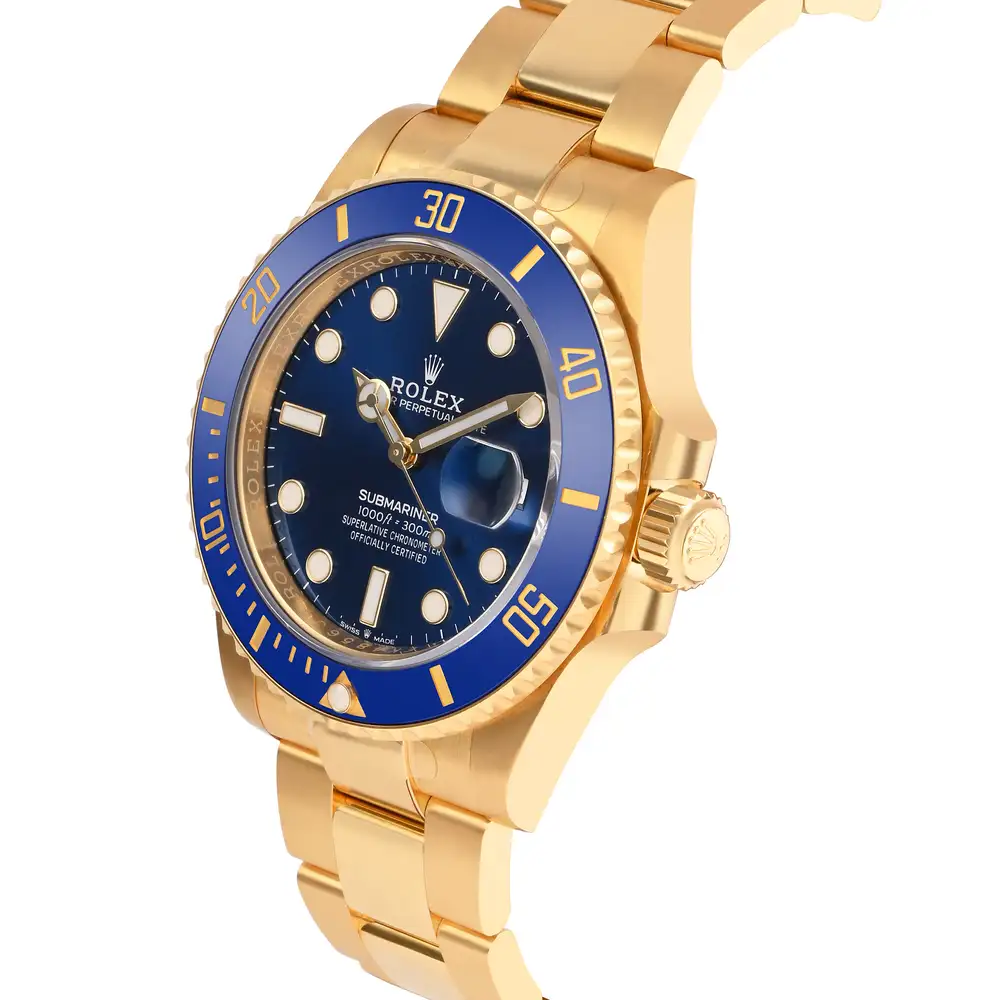 The Rolex Submariner 126618LB is a true symbol of luxury and performance. Crafted entirely in 18ct yellow gold, its 41mm Oyster case features a striking blue dial and matching Cerachrom bezel. Powered by the Caliber 3235, it offers exceptional precision, a 70-hour power reserve, and 300m water resistance. Bold, radiant, and built for the depths — a masterpiece of diving excellence.