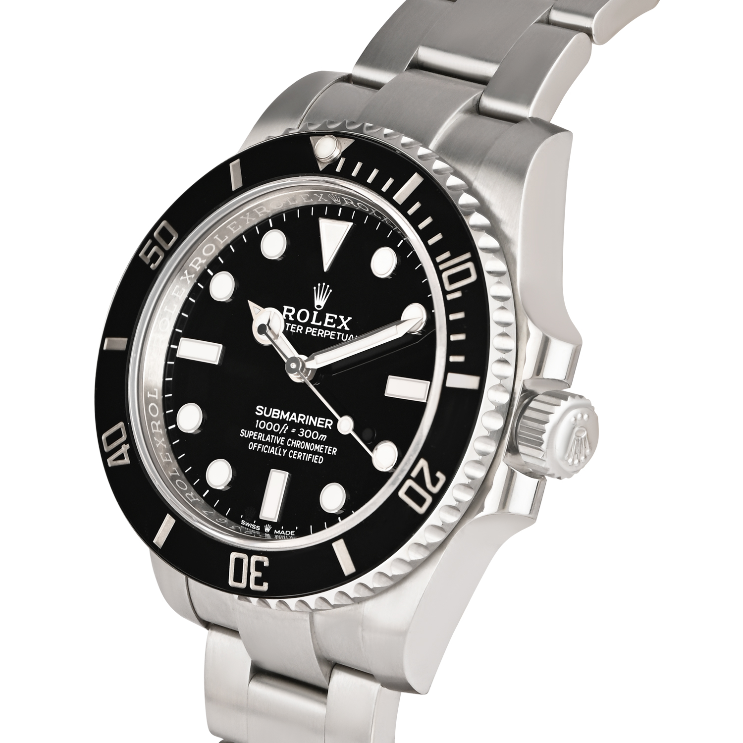 The Submariner reference 124060 represents the modern evolution of Rolex’s original diving watch design. Crafted in Oystersteel with a refined 41 mm case, it preserves the classic Submariner aesthetic while offering enhanced proportions and comfort. Its uncluttered black dial provides exceptional legibility, complemented by luminous hour markers and the scratch-resistant Cerachrom bezel. Powered by the Calibre 3230 and paired with the Oyster bracelet featuring the Glidelock extension system, it delivers precision, reliability, and everyday versatility.
