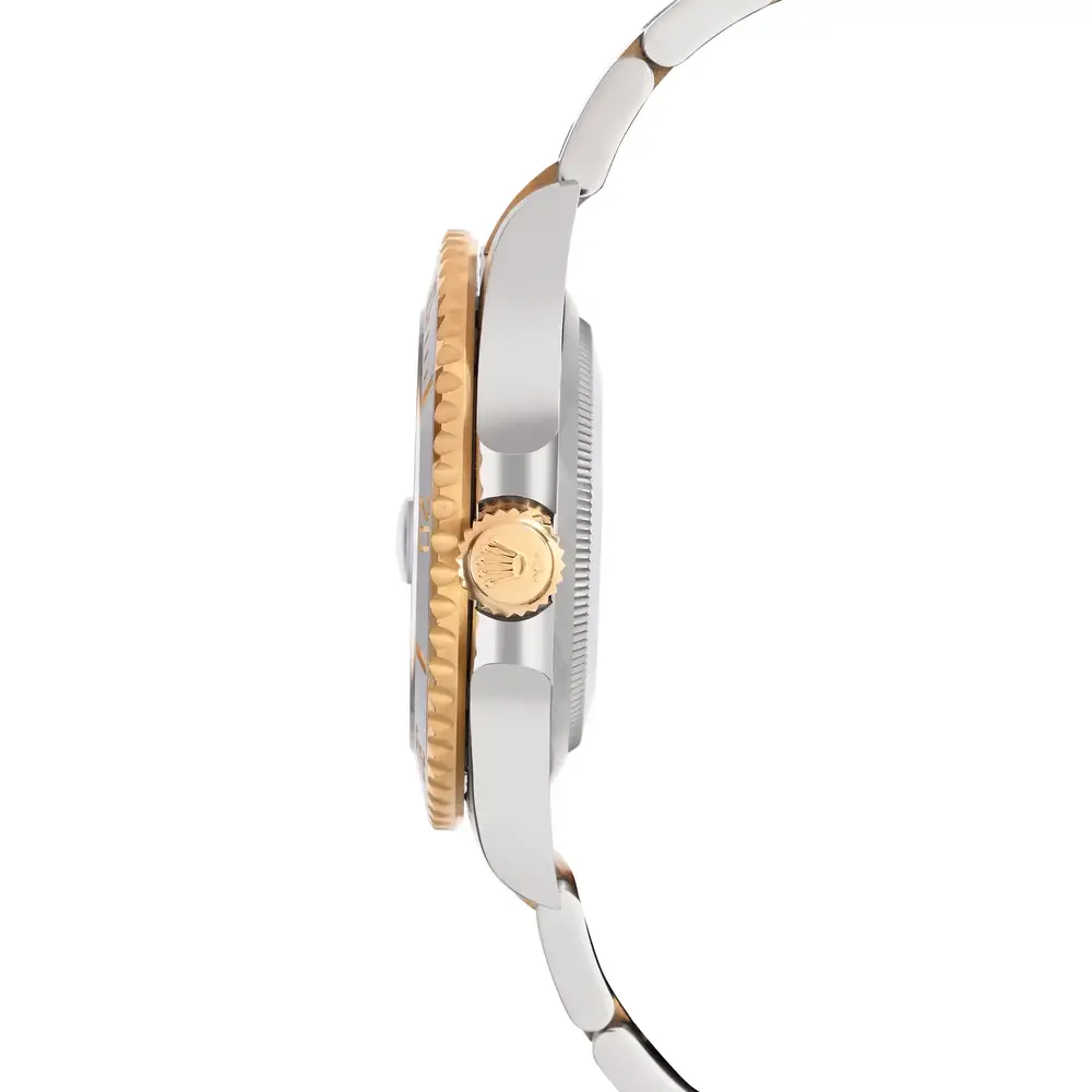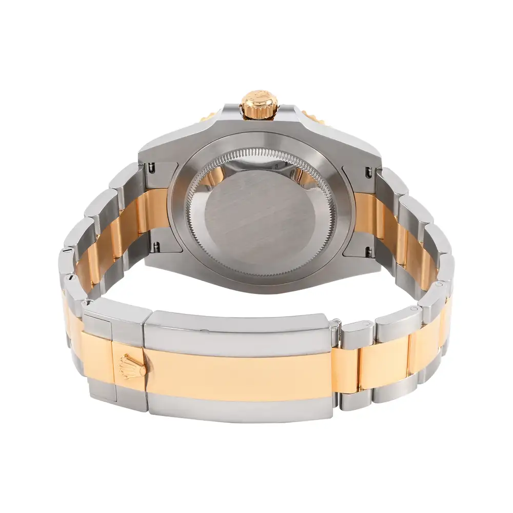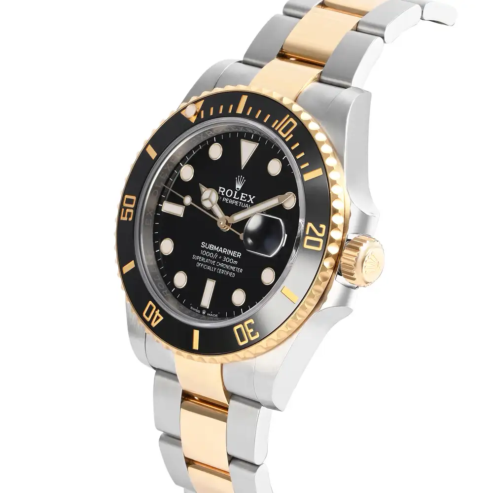 The Rolex Submariner 126613LN features a bold black dial and black Cerachrom bezel, combined with stainless steel and 18k yellow gold for a luxurious two-tone finish. Powered by the Calibre 3235, this 41mm diver offers professional performance with elegant presence.