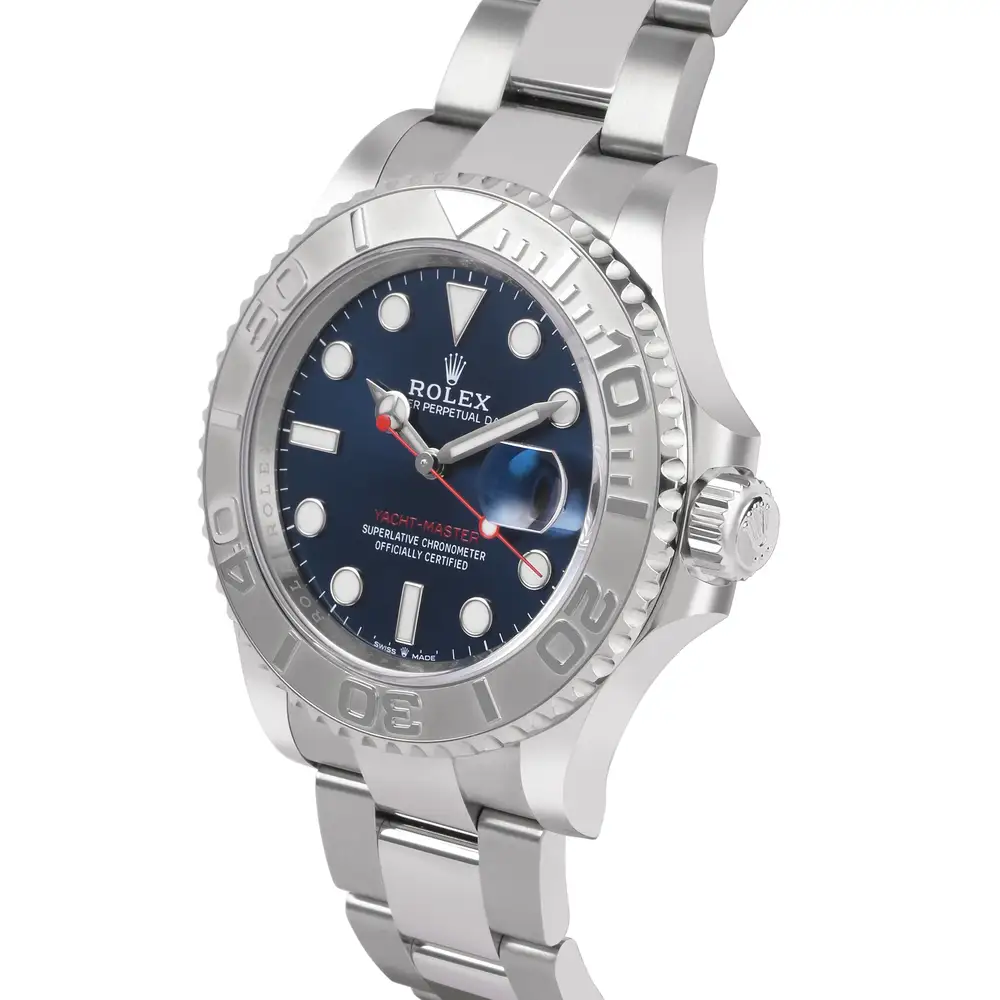 The Rolex Yacht-Master 126622 blends nautical elegance with robust performance. Its 40mm Oyster case is crafted from Oystersteel with a luxurious platinum bidirectional bezel, framing a striking blue dial with Chromalight display. Powered by the Caliber 3235, it ensures exceptional precision, a 70-hour power reserve, and 100m water resistance. A perfect balance of sophistication and seafaring spirit.