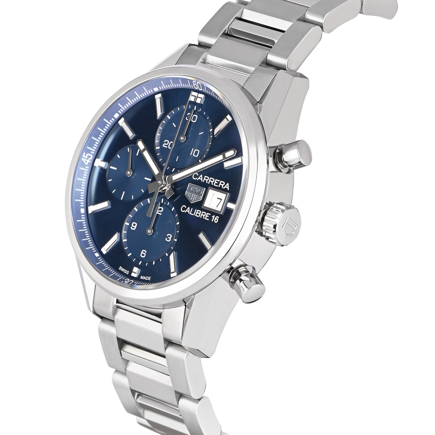 The TAG Heuer Carrera Calibre 16 Chronograph is a refined Swiss luxury sports watch that blends classic Carrera styling with high-performance chronograph functionality. Featuring a rich blue sunray dial with three chronograph sub-dials and a date display, it delivers excellent legibility with a modern, elegant look. The polished stainless steel case and bracelet add durability and sophistication, making it suitable for daily wear, business settings, and special occasions. Powered by a Swiss automatic chronograph movement, this Carrera is an ideal choice for enthusiasts who value precision, heritage design, and timeless versatility.