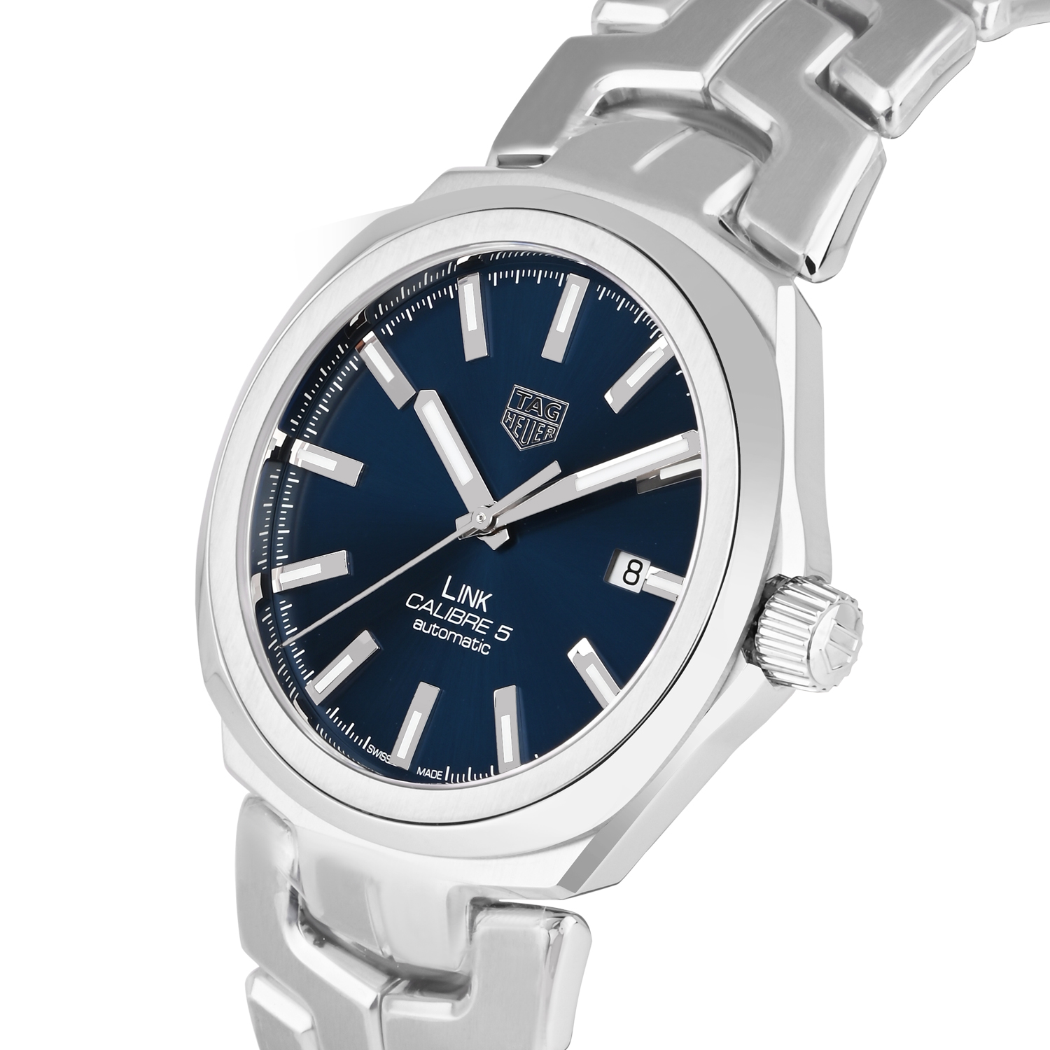 The TAG Heuer Link Calibre 5 is a sleek and versatile Swiss-made timepiece crafted for everyday sophistication. It features a rich blue sunray dial with polished hour markers and a date display at 3 o’clock for clean readability. Paired with the iconic Link stainless steel bracelet, this watch offers exceptional comfort and a refined sporty look. Powered by the dependable Calibre 5 automatic movement, it’s an ideal choice for work, travel, and formal occasions alike.