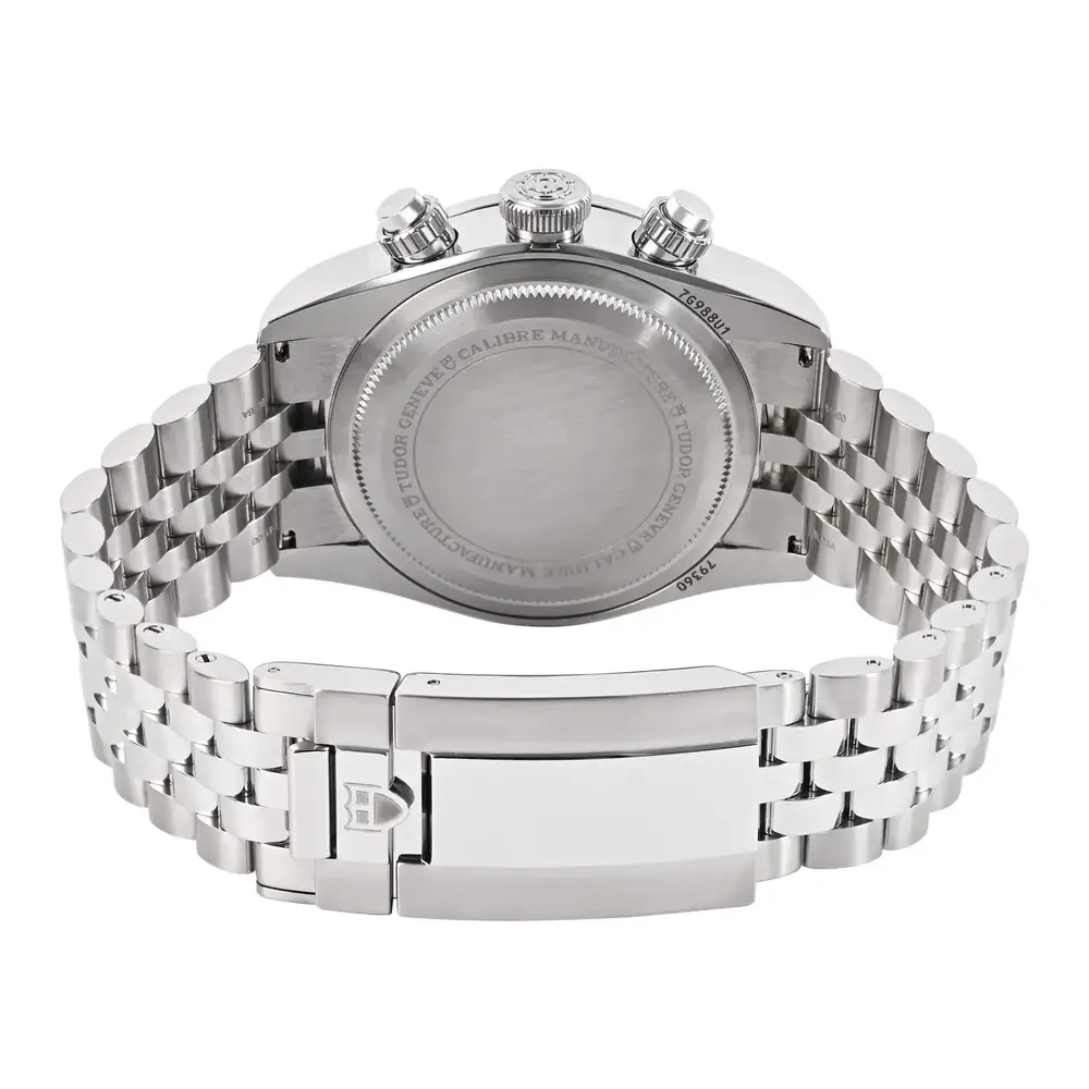 The Tudor Black Bay Chrono “Pink Dial” 79360N is a bold and collectible men’s sports chronograph that blends vintage-inspired racing aesthetics with modern performance. Its striking pink dial is paired with contrasting black sub-dials for a classic panda-style chronograph look, while the black tachymeter bezel adds a sharp motorsport edge. Built in stainless steel with a robust bracelet, this timepiece delivers everyday durability, a confident wrist presence, and chronograph functionality—perfect for enthusiasts who want something rare, sporty, and statement-making.